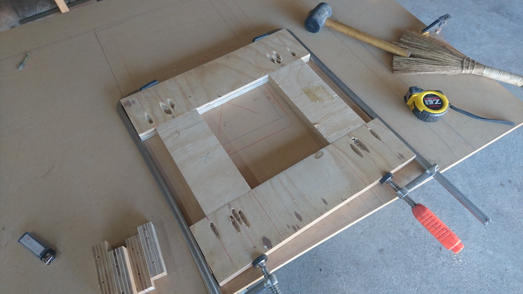 この後丸ノコを吊るすための仕掛け造りをしていたところで