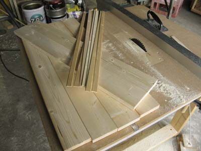 フェンス・クロスカットスレッド・テーパーカッドジグなどテーブルソーのジグをフルに使って荒切り