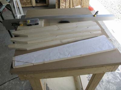 作業再開です。テーパーカッドジグに原稿を貼った材料をセットして、