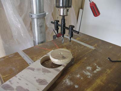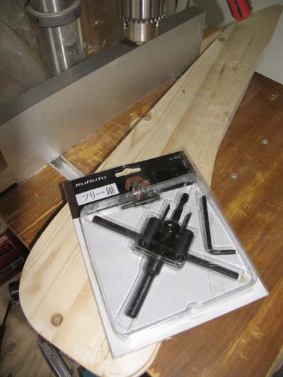 ドリンクホールダー用の穴をあけるためにボール盤に自在錐をセットしました。