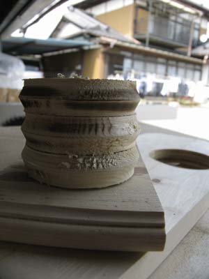 トリマーにトップベアリングパターンビットをセットして倣い加工しました。