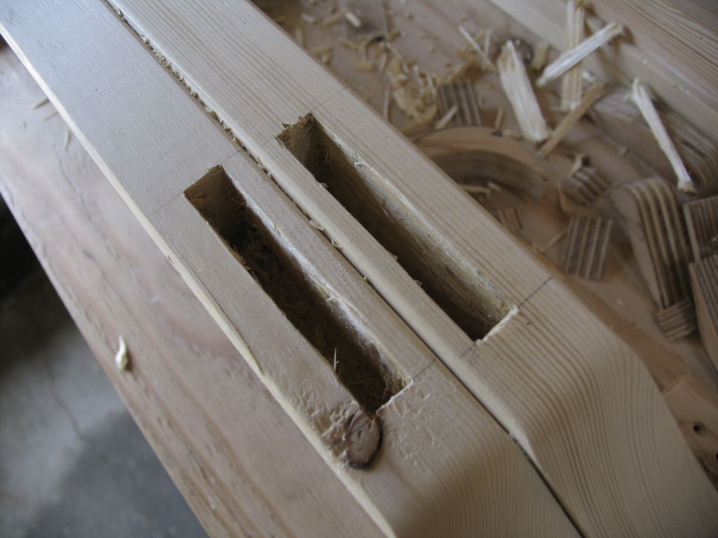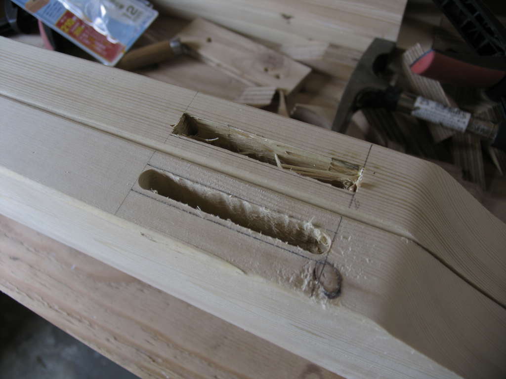 やっと作業再開です。ホゾ加工に自信がなく、忙しかったこともあって、ずっとのびのびになってました。(^^;