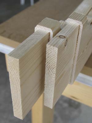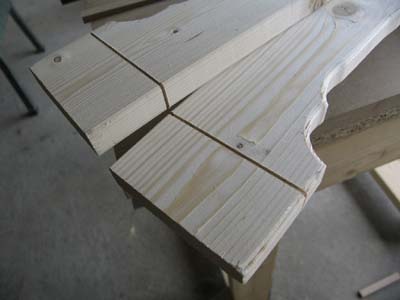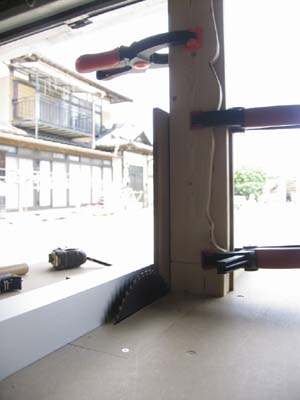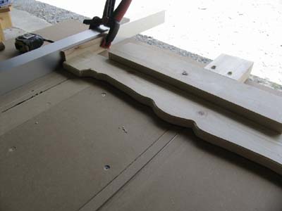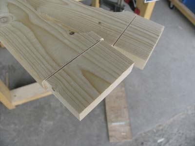 貫の奥の2x4のT時型がジグです。フェンスに幅決め用の端材をセットしてます。