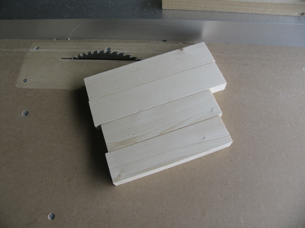 テーパーカットジグを使ってカットした足4本と、座面にする25mmの合板の端材です。