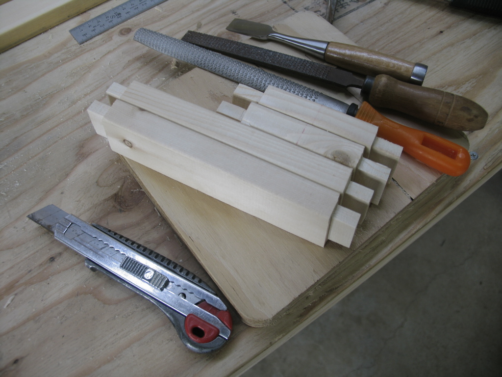 ノミ・ヤスリ・カッターなどを駆使して、ほぞの加工を仕上げます。