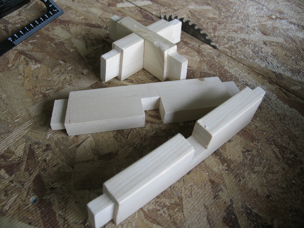 なんだか、変なことになってますが、組む順番を間違えてしまいました。ほぞの前に相欠き加工を組めばよかったのですが.....初めてのほぞ組で舞い上がっちゃってますね。