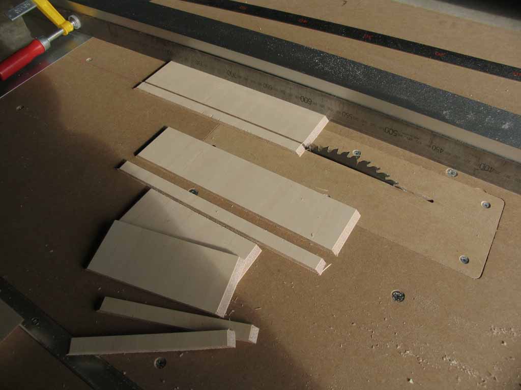 今日は抽き出し部分の製作から、前面の板をテーブルソーでカットして抽き出しの前板を作ります。