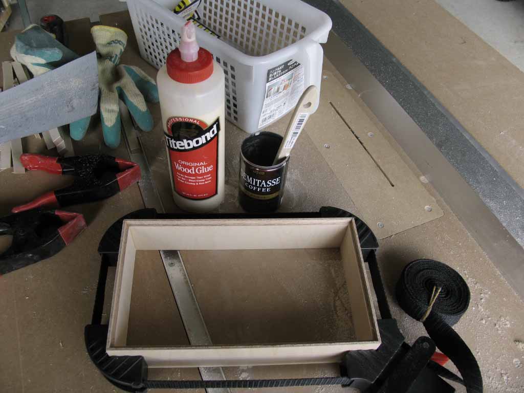抽き出し部分の組み立てに入る前にちょっとした入れ物を作ります。