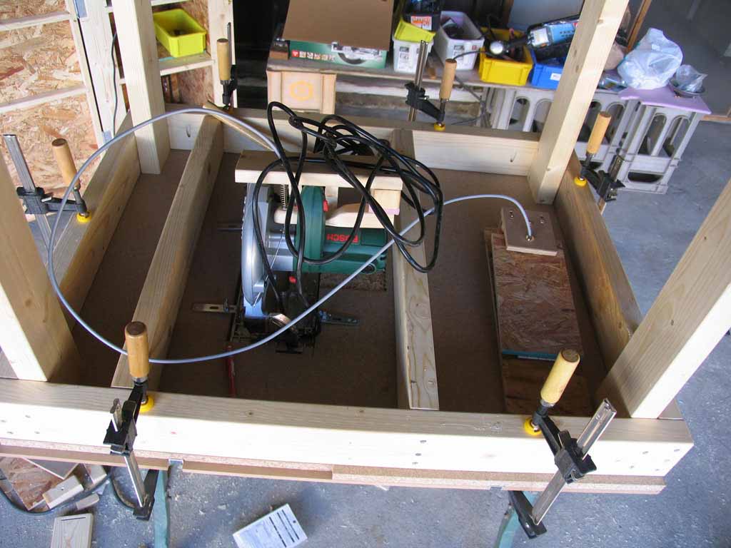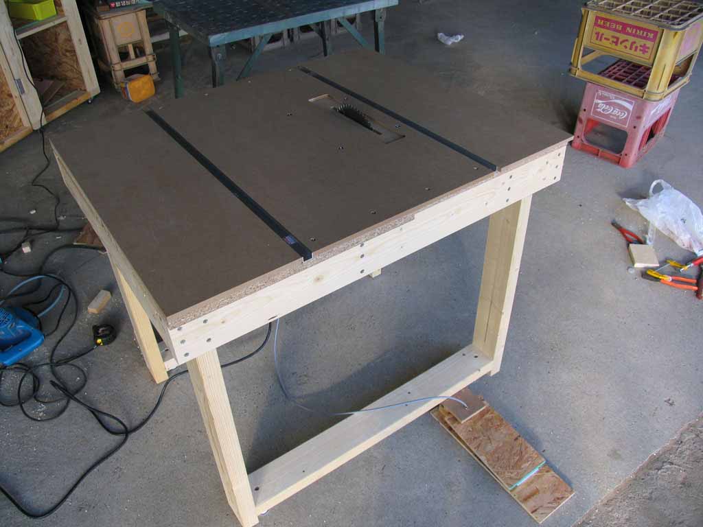先週テーブルソーの脚部の製作が終了したので、いよいよ組み付けですが、