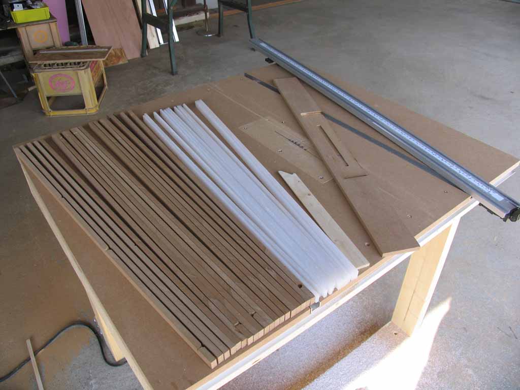 アルミチャンネルは20*12*2tなので、取り外したMDF9mmと、アクリル5mmの端材から16mm幅の棒をカットします。いい感じでちょうどいい幅の物ができたので、切れるだけカットしました。