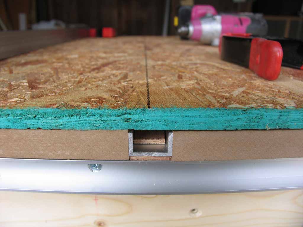 余談ですが、天板下の前後にもアルミチャンネルを仕込みました。これはフェンス等に利用するつもり。