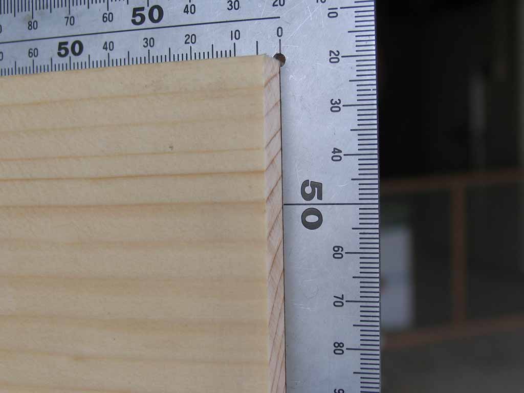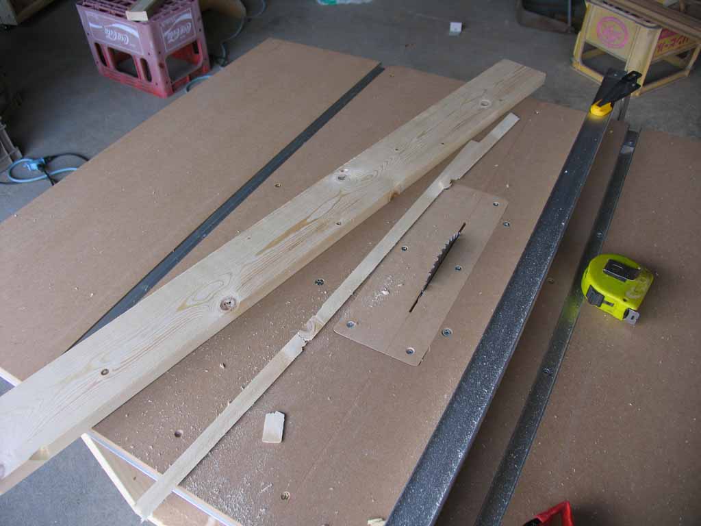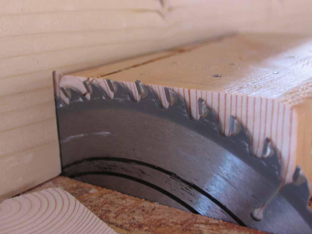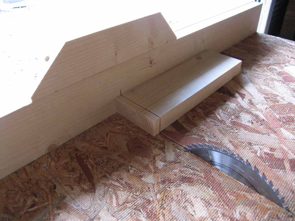 次にバックボード用の1X4材のR部分をフェンスを利用して落としました。丸鋸だけの時ではあまり好き好んでやる事の無かった作業ですが、2mm程度の厚みでカットできました。