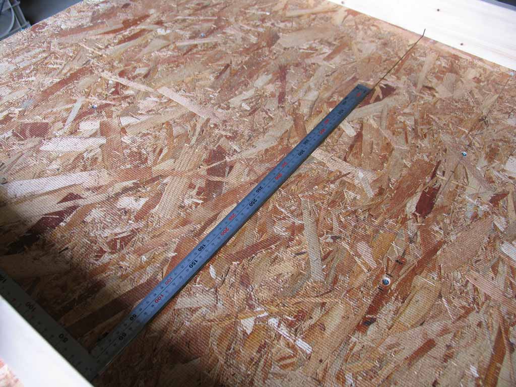 手前側のボードを取り付けるためにベースボードに途中まで切り込みを入れて慎重に直角を出します。