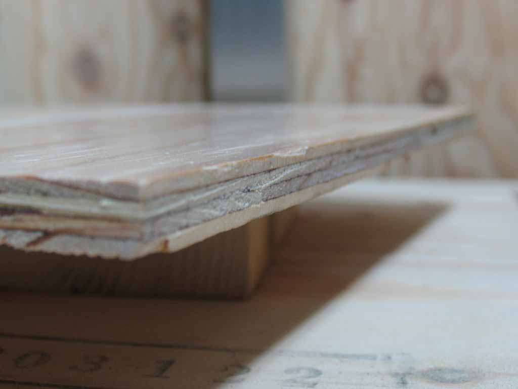 針葉樹合板の端材を2枚新たに用意しました。どちらも気持ち念入りにサンディングしています。