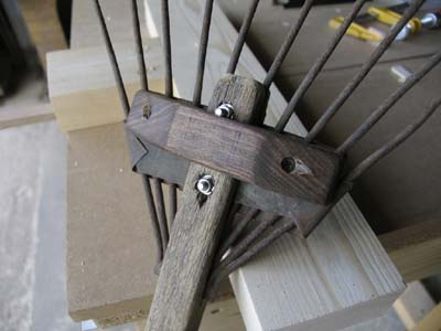 さっき塗装した木片で本体と柄を挟み込んでビス止め。