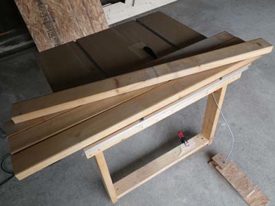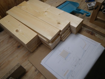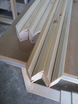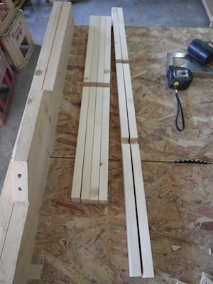 1x4の端材を必要な幅・長さに切ってテーブルソーで相欠き加工。