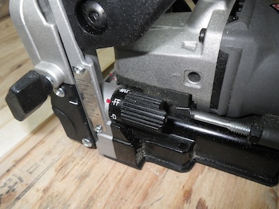 ジョインターの切り込み調整ダイヤルがなぜか使ったことも無いFFサイズにセットされてます。