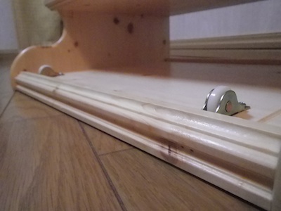 下段の小口を隠すため&と車のストッパー代わりに飾り縁を追加しました。