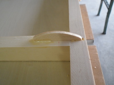 組み立ては白ボンド、ビスケットはタイトボンドで接着しています。