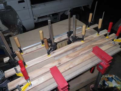 いつもは接着剤を付けてからあわてて用意するクランプですが、今回は珍しく先に用意しました。(-_^;)