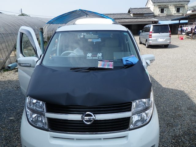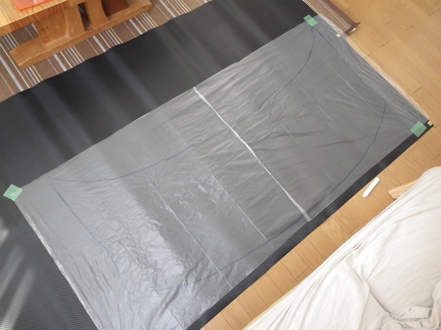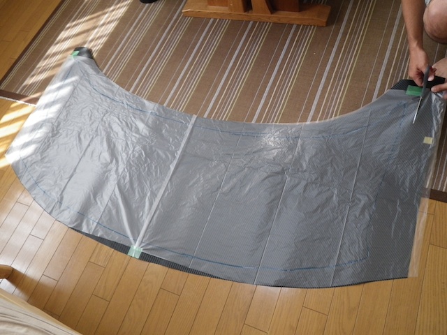 貼付けてあるゴミ袋はボンネットの型を取ったもの。
