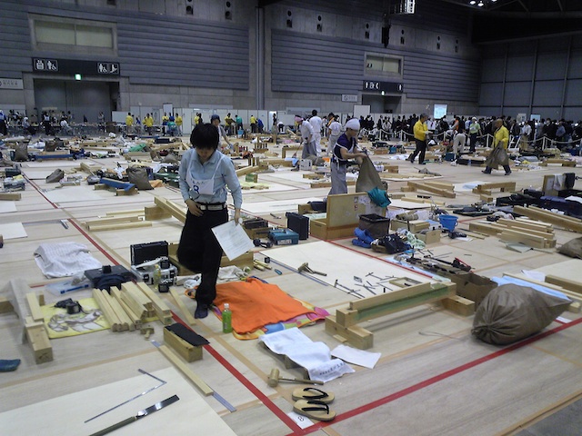 会場はいくつかに分かれているようですが、パシフィコ横浜では、造園・トビ・建築大工・左官・電子機器製作・フラワーアレンジメント...等の競技が行われてました。