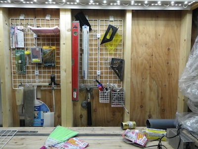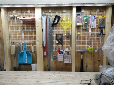 作業台前面の壁にネット収納を1面追加しました。