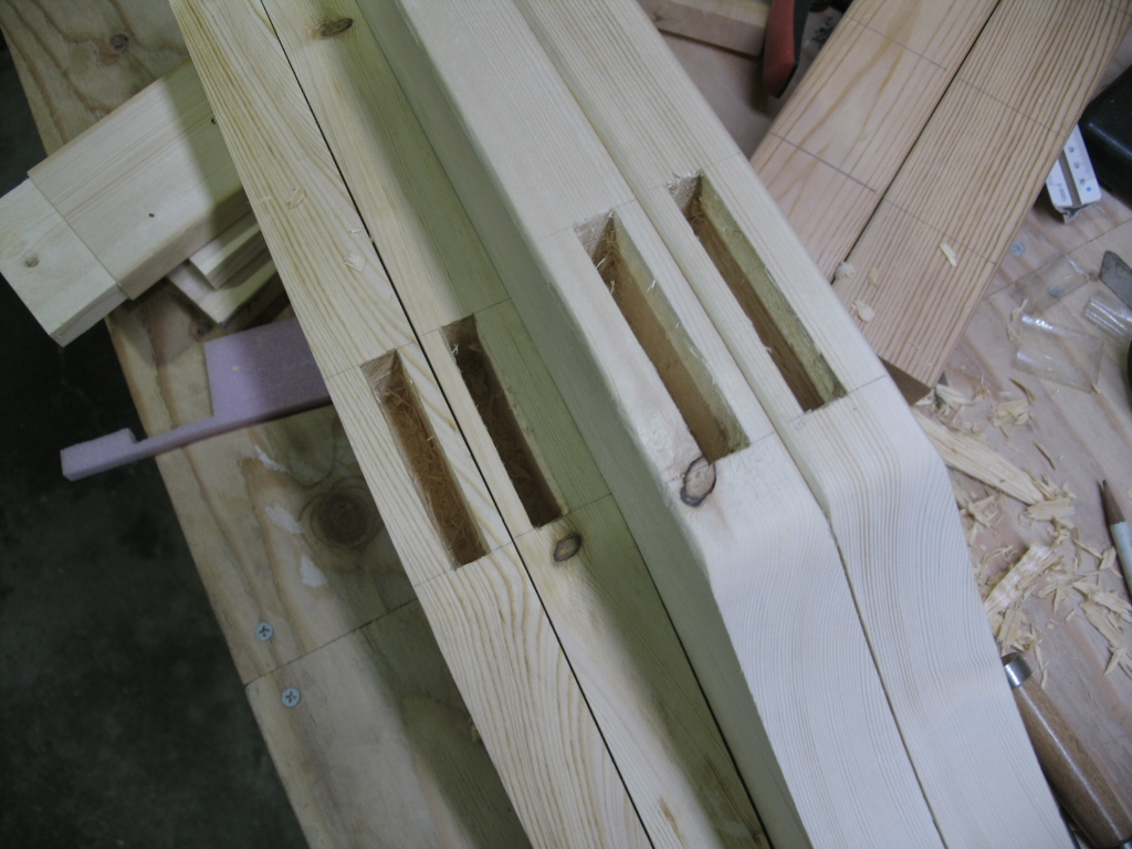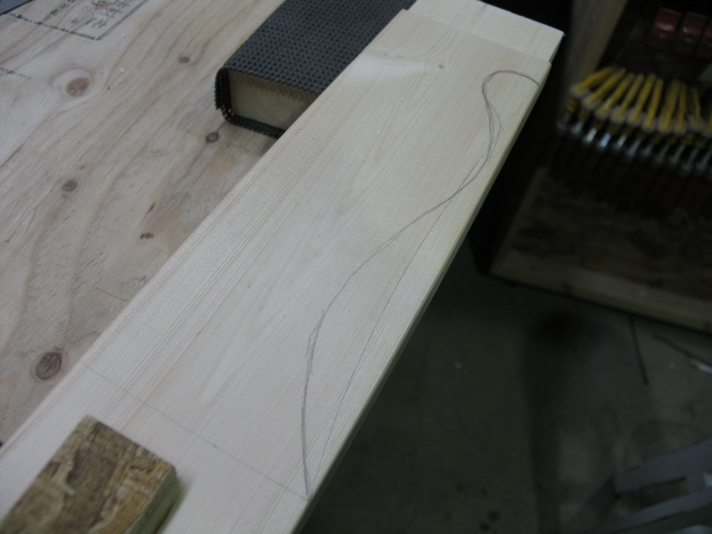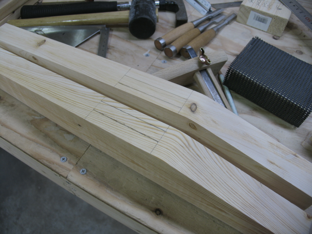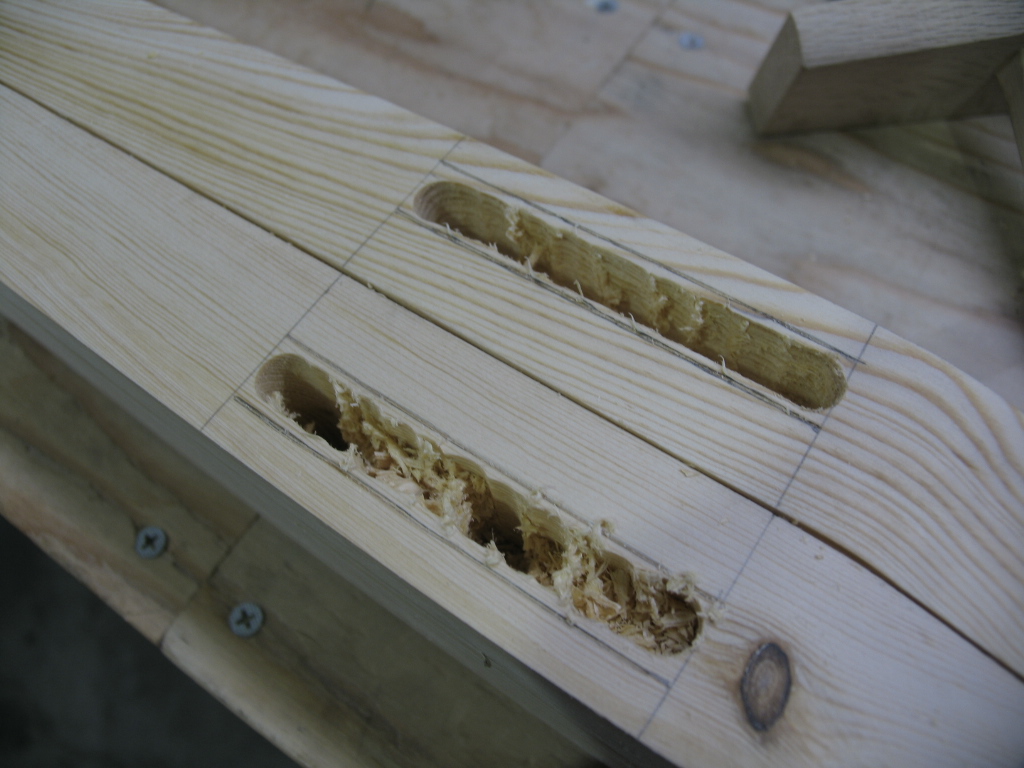 今日は予定を変更して前後の足をつなぐ貫の加工をすることに。(正直行ってホゾの仕上げにびびりが.....w)