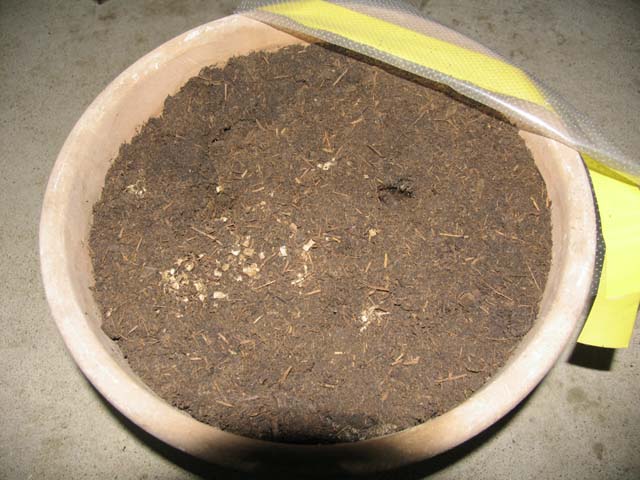 ふたを開けるとふんわりした削りくずが入っていたので、水で湿らせて適当な枝を切って