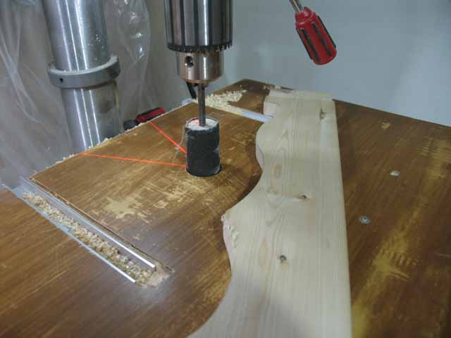 ドリルプレスを使って大まかに穴を掘り、