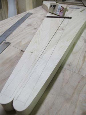 さて、ソファー製作を続けていきます。前足のホゾ穴を掘るための墨出し。