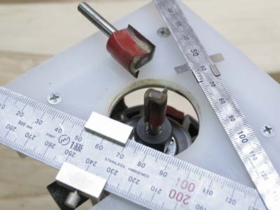 まずは、19mm、12mmのトリマービットを付けてサブベース端までの距離を測ります。