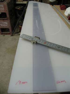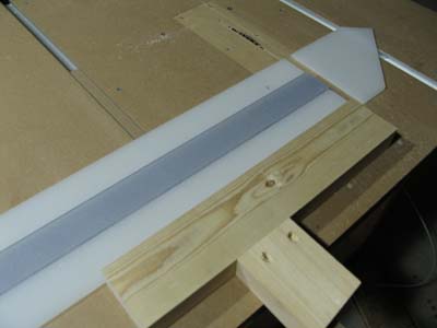まずはベースの19mm側に先ほどの実測値 +3mmのところに両面テープでフェンスを固定。