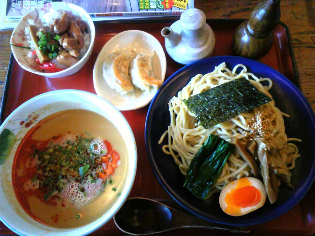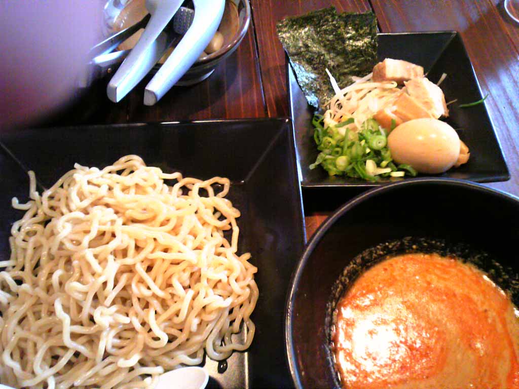 メニューは「白(普通の豚骨)・黒(マーユ入り)・赤(坦々)」とありまして、今日は赤のつけ麺をチョイス。なかなかいけてました。