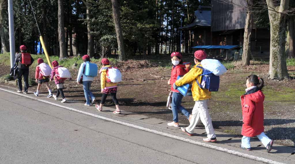 そんないいお天気の中、我が娘はランドセルをしょって長男・長女・他の登校班の皆と共に今度こそ正真正銘の初登校でした。(昨年度同様、男子は長男1人・女の子8人の登校班)まぁ初登校が晴れてくれただけでも良かったと思いましょう。(^_^)