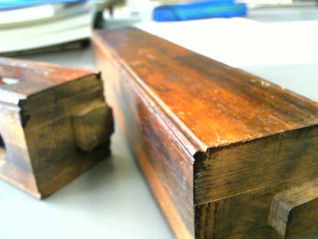 和室など柱型が見えるような場合柱の直角部分の角をカンナで落としてありますよね? 高級な造りになってくると【銀杏面取り】をしたりするそうです。この話を聞いて思わず「ニヤッ(^ロ^)~~♪」しちゃいました。【銀杏面取り】はトリマーで加工するまさにアレです。最も大工さんは専用のカンナで仕上げるそうですが.......