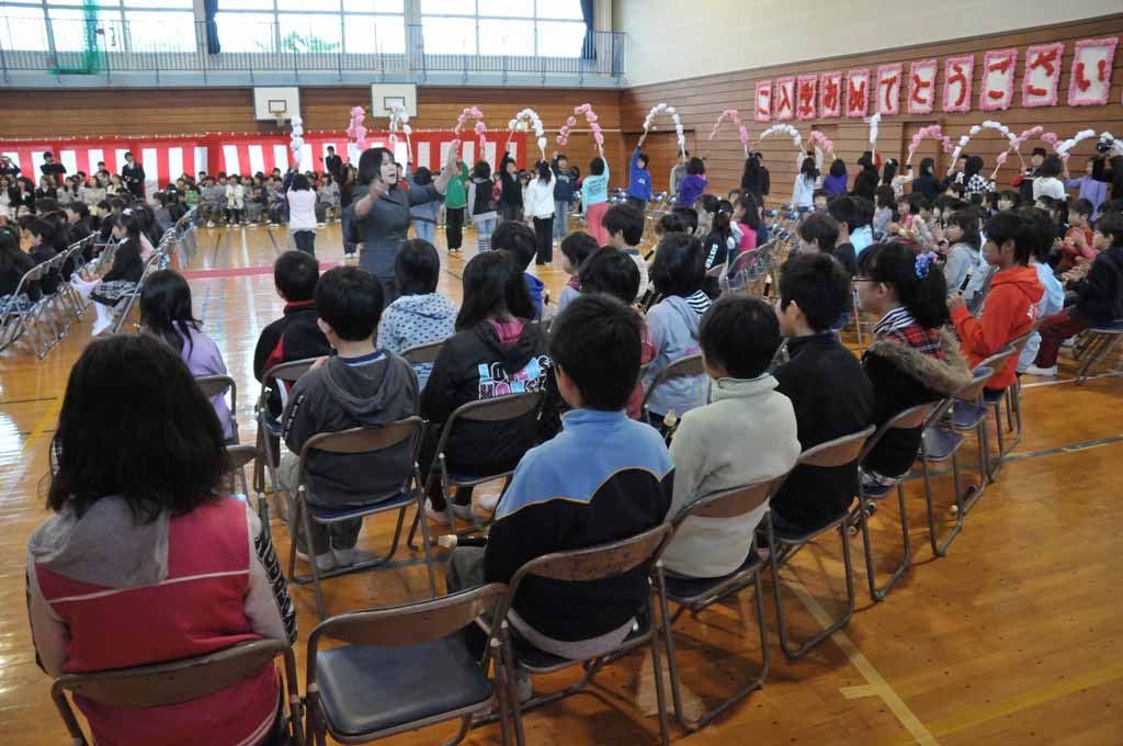 幼稚園の卒業式の会場でもあった小学校の体育館ですが、小学校の全児童数は約200人。昨年度娘の通う幼稚園を卒園した園児の数とほぼ同数。卒園生の8割以上は他の小学校へ進学します。子供の数は同じ200人でも、出席する親の数が2割程度なので、同じ会場でもかなり揺ったりとしていて広く感じました。