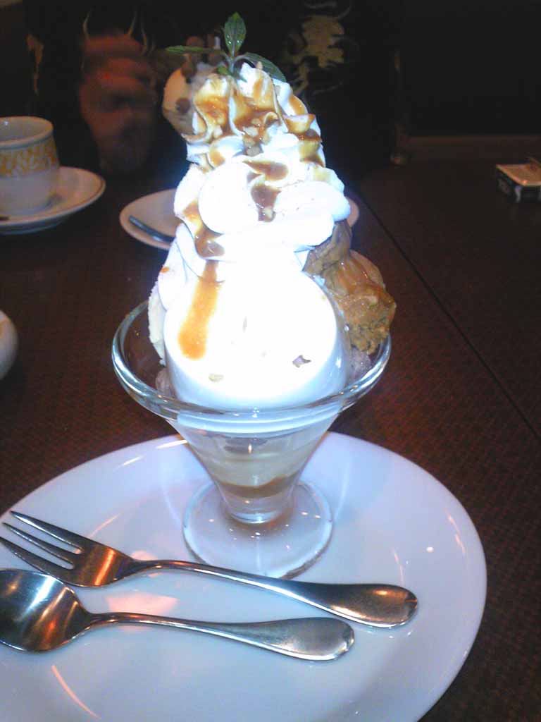 顔を合わせるのは半年ぶりなので、3時間くらいしゃべってました。周りを見ると男同士できている人でも堂々とでっかいパフェを頼んでいる人達が.......
