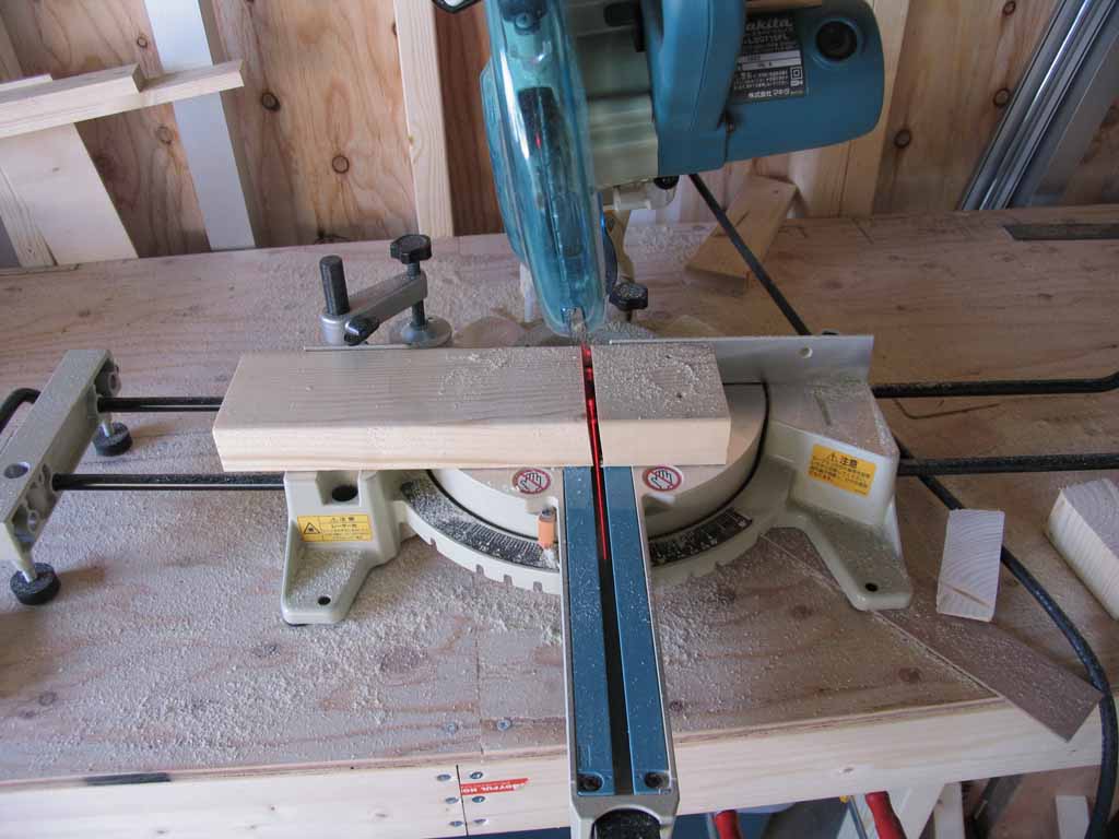 上の角度付きは借り物スライド丸鋸で、