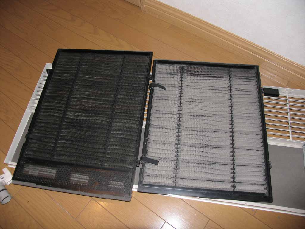 上の写真は左の1枚だけ掃除をしたもの。3ヶ月程度でホコリがかなりたまってます。普段はもう少しマメに掃除していたのですが、昨年末から週末は木工ばかりしていたので、だいぶ期間が空いてしまいました。σ(^_^;)