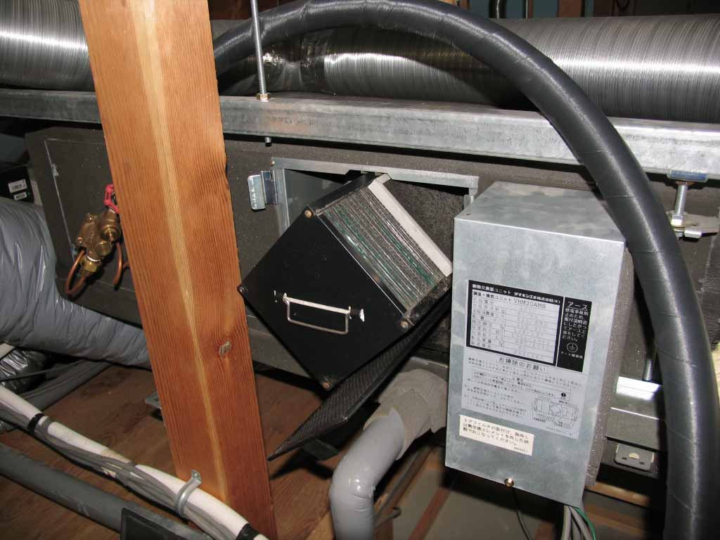 我が家のエアコンは1台で2階の天井裏にビルトインされています。これが壊れると冷暖房・換気すべてがパァになってしまいます。(゚〇゚;)