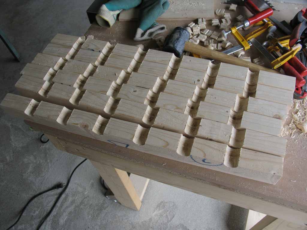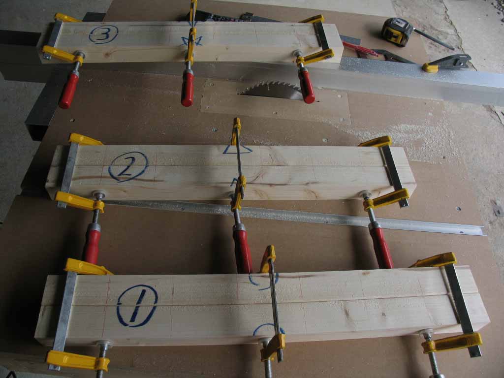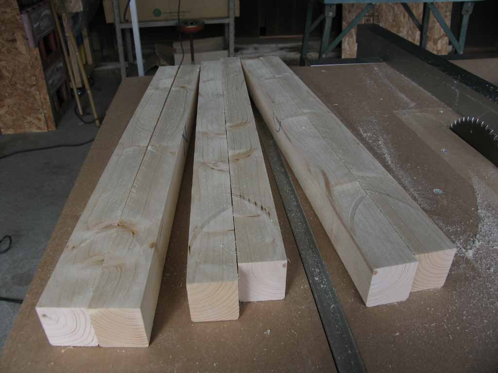 早速製作に入りたいところですが、まずはチョットした治具!?作りから。2x4 6ftの長さを3等分にした物を、テーブルソーで挽き割りました。