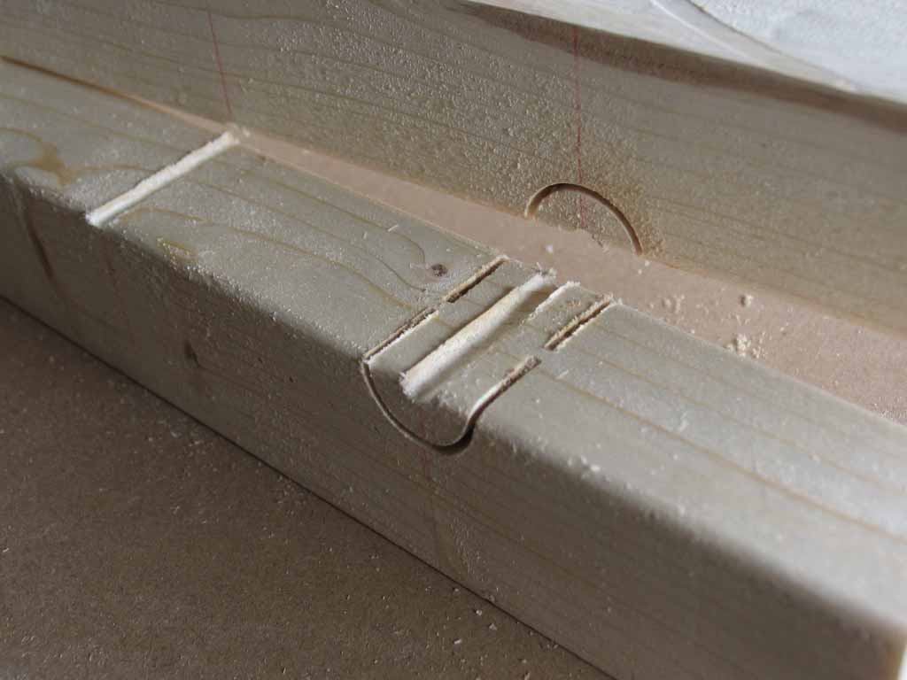 下部の直角はテーブルソーでクロスカットスレッドを使って、