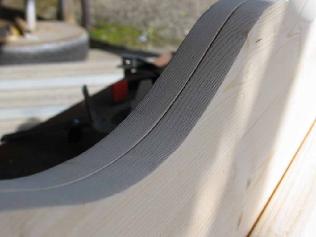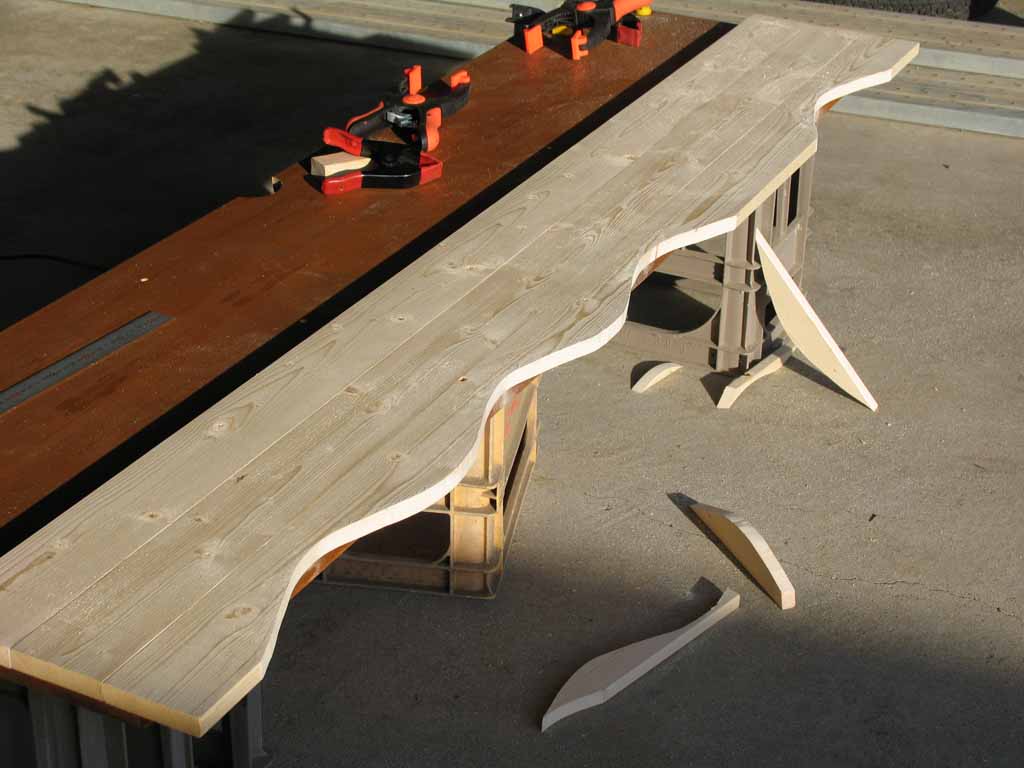 2枚目は気持ち外側で切って、使わないところで2枚をビス止め。目地払いビットで整えた後、段差等気になるところは金ヤスリをかけて、最後は60番のサンダーで仕上げました。チョット荒いですが、この後トリマーで木口処理をして仕上げます。