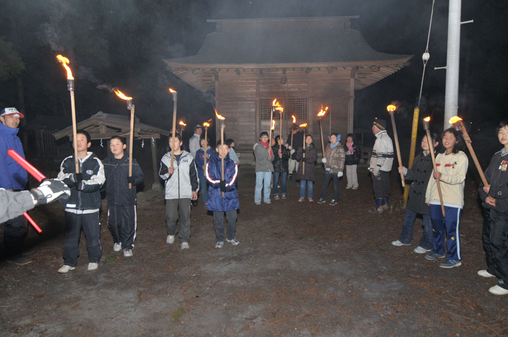 子供たちと近所の神社にお参り。神社でたいまつに火をつけてやぐらのあるところまでみんなで火を運びます。これは毎年小学5・6年生の役目。