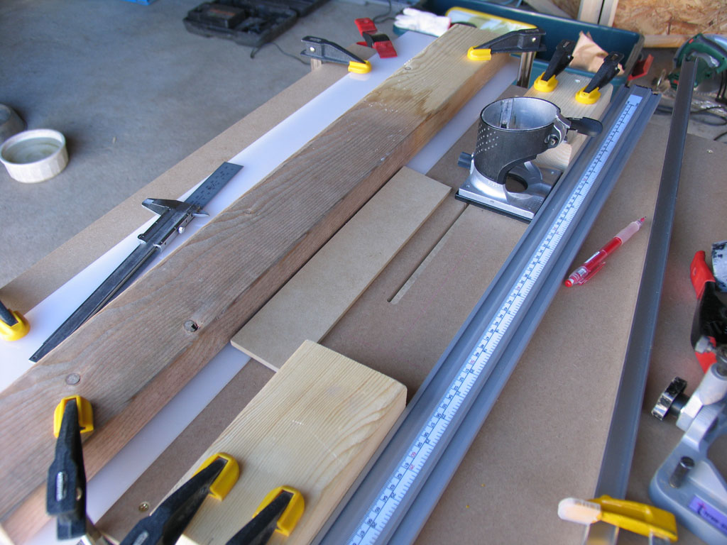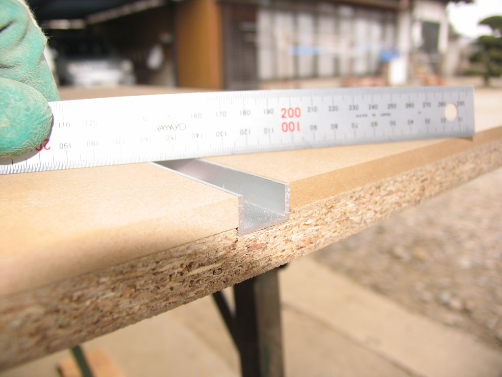 Cチャンネルの埋込み分が3mm程不足しているので、トリマーでパーティクルボードに21mmで深さ3mmの溝を掘りました。再度仮組です。
