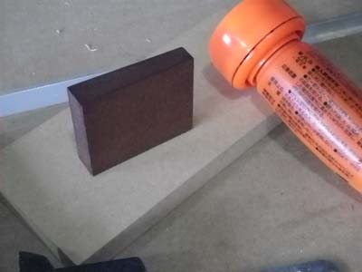 取り付け位置が斜めっているので、MDFの端材で台座を用意。
