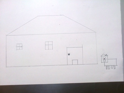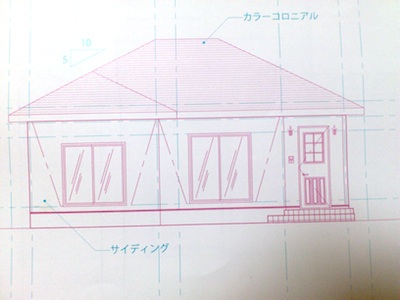 見本にある、インターホンや外灯まで描いてあるし、玄関ポーチのタイル、屋根やガラス窓の装飾、筋交いの点線........