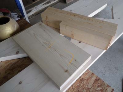 梁材の2x10の端材と2x4を先日直した図面の寸法に基づいてカット