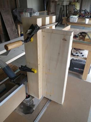 アリ溝の加工は3m以上ある材料をトリマーテーブルで加工する事はできないので、久しぶりに手持ちで作業をしましたがはっきり言って怖いです。自作の120mm角のサブベースを付けてるとはいえ、テーブル作業の安定感とは比べるまでもありません。ちょっと前まで当たり前にやっていた事なのに….…ルーターと違って片手が刃の近くのプレート部を抑える事も恐怖心をあおっているのかもしれません。